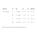 Sizing: The size refers to the rough age of an average child and the height refers to the max height it is suitable for. For example "size 8 (128)" means a 7 to 8 year old with height of max 128cm.