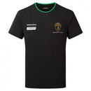 The official replica team T-Shirt for Automobili Lamborghini professional racing division. Stylish black overall with Green contrasting details to match the bright Green used in the race car livery.